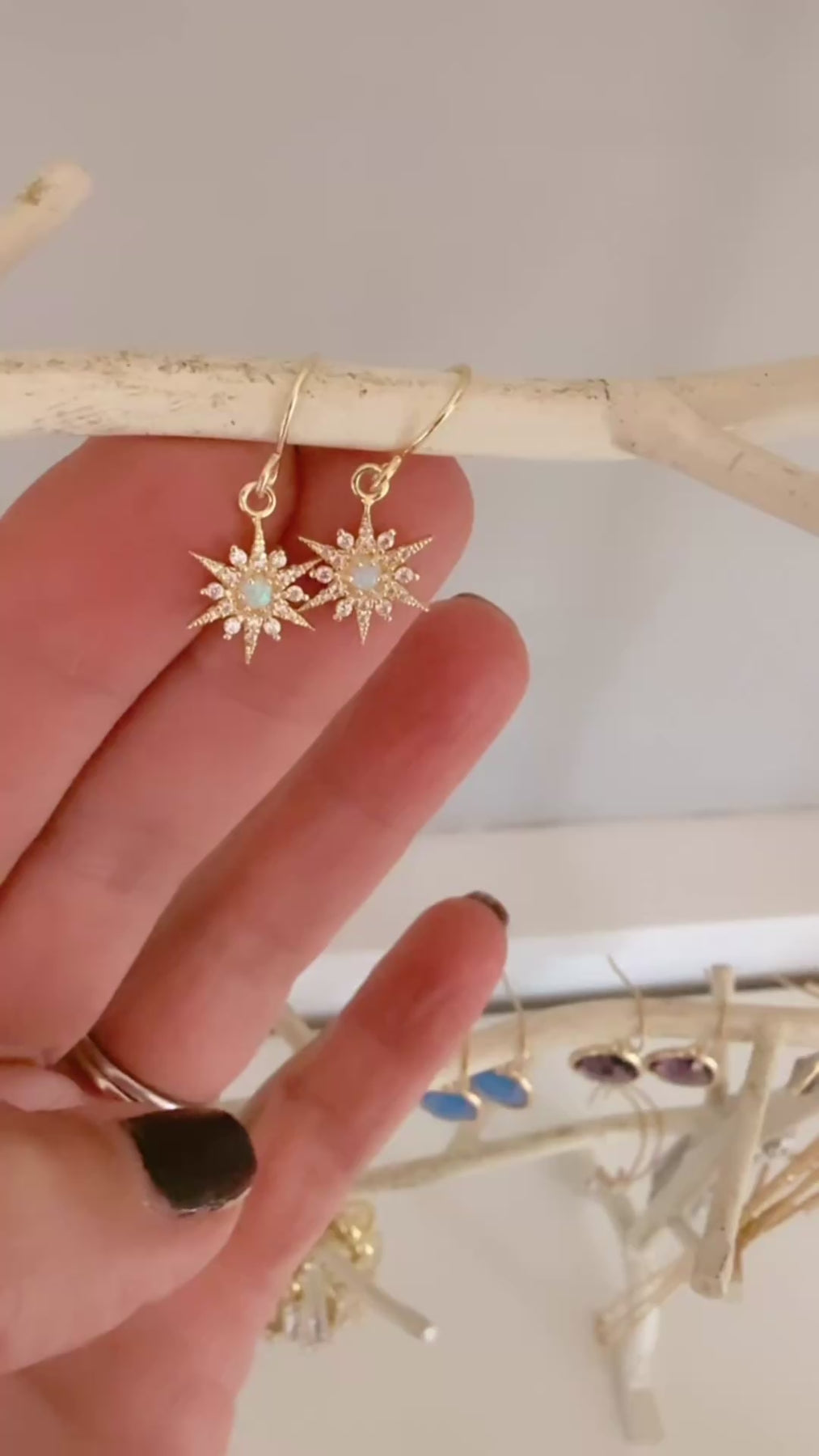 Stunning gold star earrings with iridescent opals & FREE SHIPPING! 1" drop, beautifully packaged. Perfect gift for her. Order today!