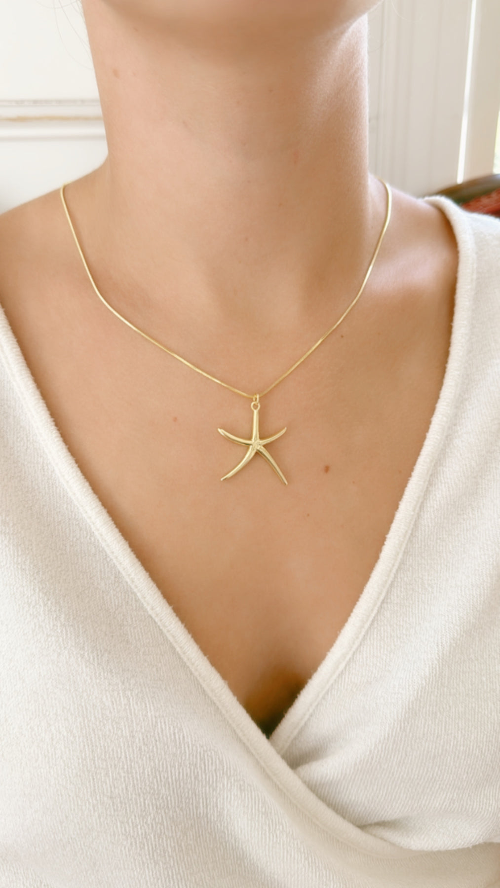 ♥Details: • 24k gold filled snake chain • 30.5mm x 26.4mm x 3.4mm 24k gold filled starfish pendant. * Length - Comes on a 16" snake chain with a 2" extender • Ethically Sourced, USA & Italy raw materials • Meticulously handcrafted especially for you! • Arrives in a beautiful package ready for gifting • Lovingly handmade by me