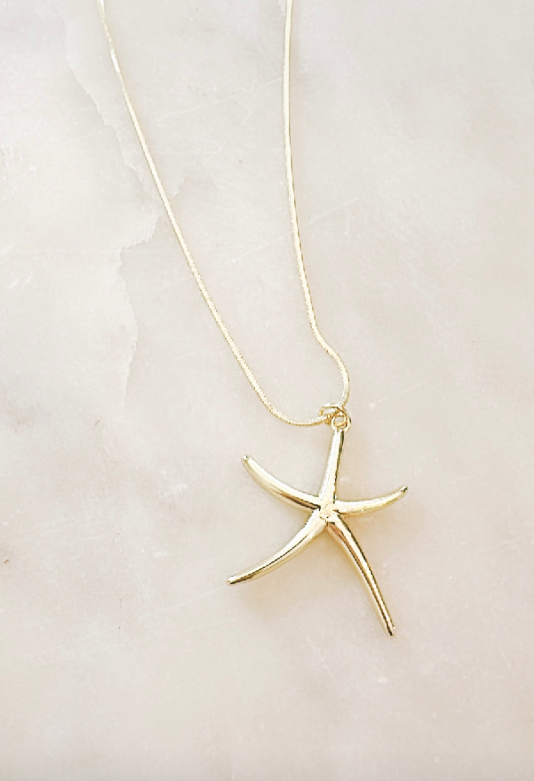 This delicate starfish charm set on a fine chain makes a chic statement and layering piece!